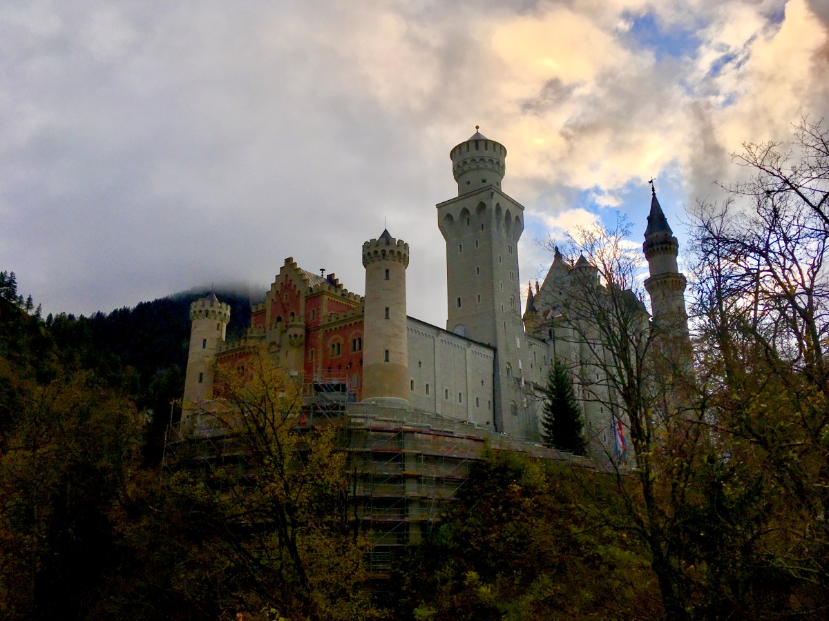 Thankfully, both sites forbid interior pictures. When one is crammed and rammed through in groups numbering some forty to sixty people, the hell of photography would be unimaginable. Moving from room to room, one already senses the disquiet of Ludwig’s spirit that his private realms have been opened up to the world. A thousand selfies would hardly improve that. As the chambers are also left predominantly dim, personal photography is all but useless. This and the unfortunate brevity of the assembly-line tours leave much of the fine detail unable to be unappreciated. As someone who studies the nineteenth century and German history in particular, I relish the chance to study every room at great length. The view of the castle from the Marienbrücke, however, will never fail to impress.